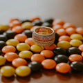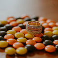 Despite her bold look, she’s buttery smooth and incredibly comfortable, the kind of statement ring that instantly pulls an outfit together. Pair her with your classic golds or stack her next to your rainbow pieces for a full “fruit bowl” moment.