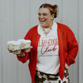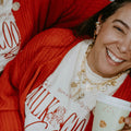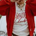 Meet your new holiday-approved cozy queen. The Red Velvet Cardigan is a soft, chunky-knit dream with oversized shell buttons that make the whole look feel elevated and effortless. She’s the perfect pop of bold red for winter dinners, gifting season, or throwing on with jeans for an easy I tried but didn’t try moment.