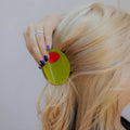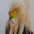 It's giving girl dinner. Your favorite olive hair claw is back and bigger than ever! This time it can fit a whole head of hair! Product testers have said this hair clip “does not budge” and “held all day” without pulling or being too tight. High quality. High hold. High camp. Love that for you. Measures 3 inches tall. Made of cellulose acetate (eco friendly!)