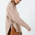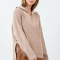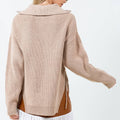 Zip up knit sweater with a gorgeous dramatic collar. Side tie adjustable drawstrings. Runs oversized. Recommend sizing down.