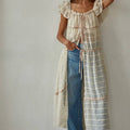 This sheer moment is everything for allllll seasons! We love how she is adjustable. You can wear her completely open or tied up!