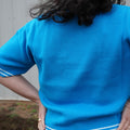 Instantly brighten your wardrobe with the My Darling Sweater Top. Crafted in a vibrant turquoise blue, this short-sleeve sweater features a relaxed fit with drop shoulders and classic white stripe detailing along the collar and hem for a timeless, sporty-chic touch. Finished with ribbed trim, it’s an easy piece to dress up or down!