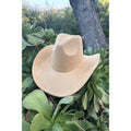Vegan suede cattleman cowboy hat stiff flat brim. Structured brim Crown size: 57 cm. Adjustable inner drawstring 65 % Cotton 35 % Cotton