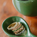 Meet the ring that does exactly what her name says. The Savory Stack is your everyday flavor booster. A crispy little band of sparkle that layers, mixes, and stacks like a gourmet burger. Colorful Czech stones wrap all the way around, giving you that juicy pop from every angle.