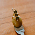 Shaken? Stirred? Served with extra olives...always. The Dirty Martini is the statement ring that brings instant flavor to your stack. Three sparkling olive-green zircon stones sit in a sleek gold setting, giving you that perfect “extra dirty” energy every time you wave your hand.