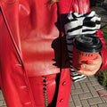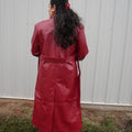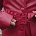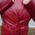This is a show-stopping piece made from buttery vegan leather with just the right amount of structure to create a flattering silhouette. It features an exaggerated shoulder and a clean front finish with a cinching belt.