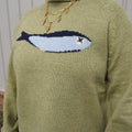 Cute and cozy sardine sweater. Inspired by seaside nostalgia and quiet coastal mornings, this romantic knit features a delicate sardine motif on a soft, slouchy silhouette. A gentle nod to fisherman core, it blends whimsy and warmth. Perfect for windswept walks, daydreams, and layering with love.