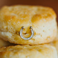 Meet the Lucky Pretzel Ring, your new everyday good-luck charm with a sugary-sweet twist. This open horseshoe-style band is lined with baguette-cut CZ that catch the light like crystals sprinkled on fresh pastry. It’s dainty, sparkly, and adds the perfect “just a little extra” to any stack.