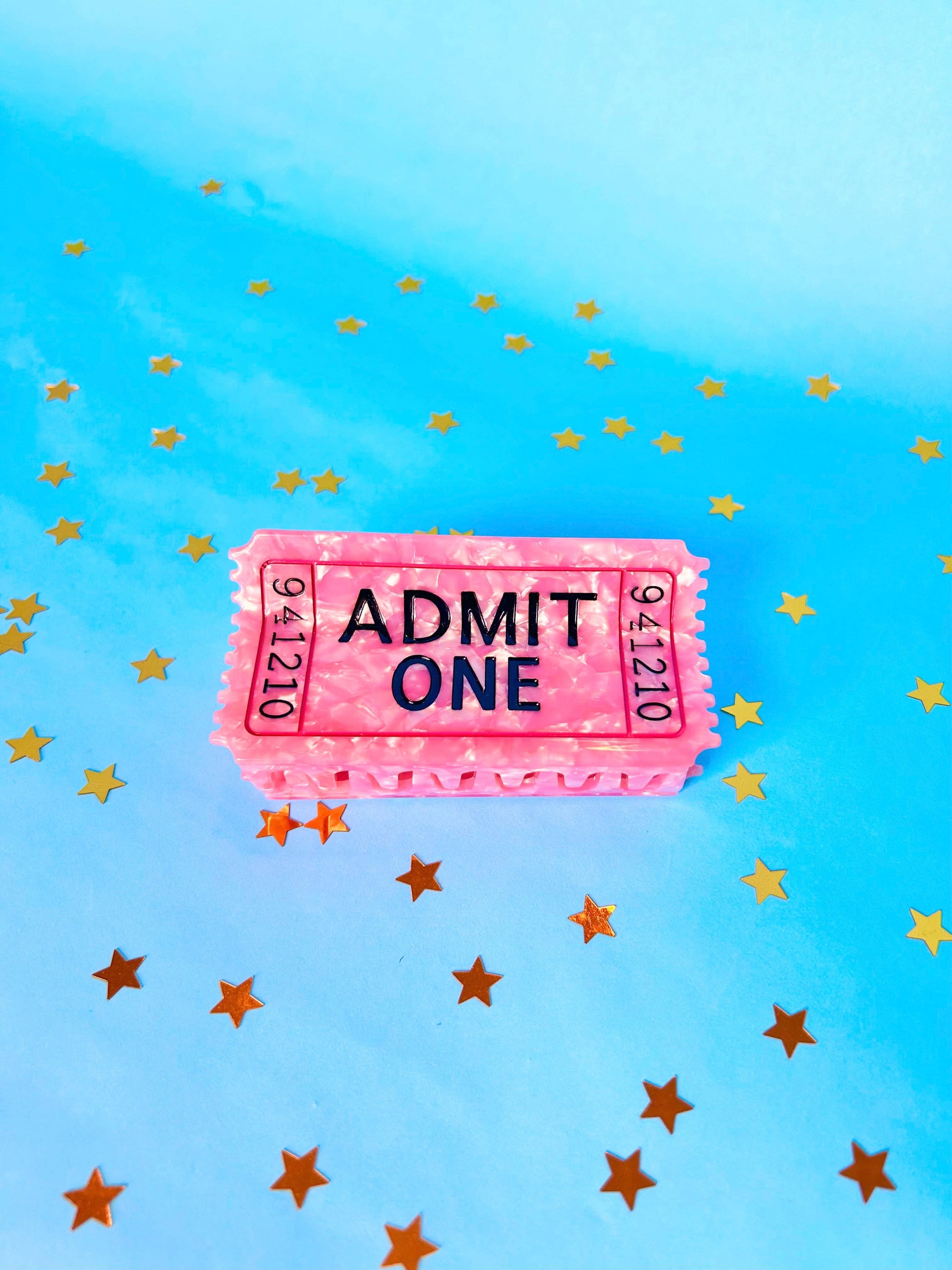 One ticket to the special screening of my most beautiful and wacky little life please! Claw measures 4 x 2 inches. Made of cellulose acetate (eco friendly!) Designed with love in San Francisco, CA.